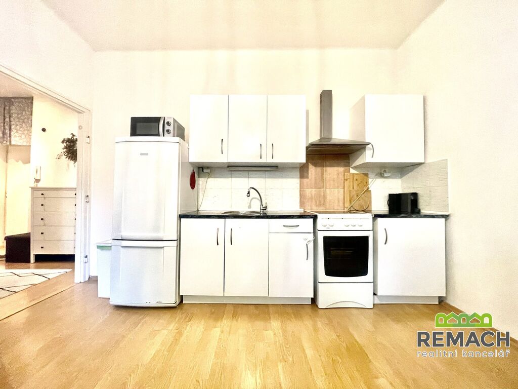 Byt je částečně zařízený a jeho dispozice nabízí prostorný obývací pokoj s kuchyňským koutem, samostatnou ložnici a moderní koupelnu se sociálním zařízením. Pokoje jsou neprůchozí, což zaručuje dostatek soukromí. Součástí pronájmu je také sklepní prostor.