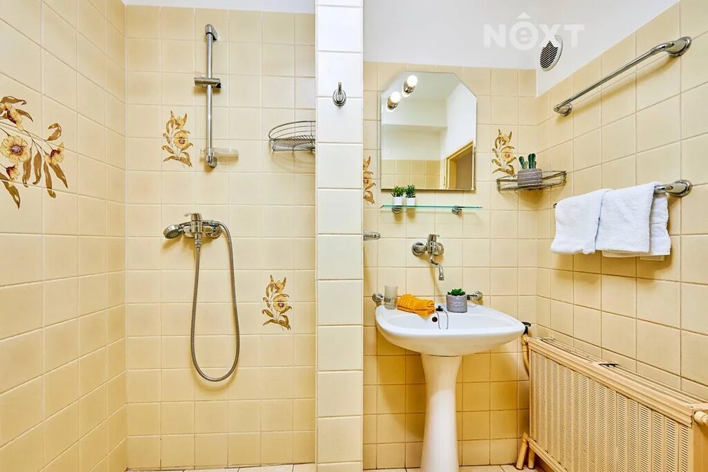 V patře vás přivítá velkorysý obývací prostor s výstupem na terasu, s kuchyní (55 m²!), čtyři další pokoje a druhá koupelna.
