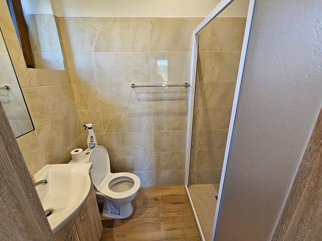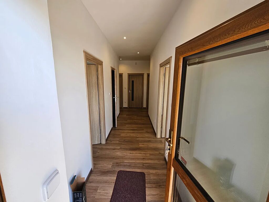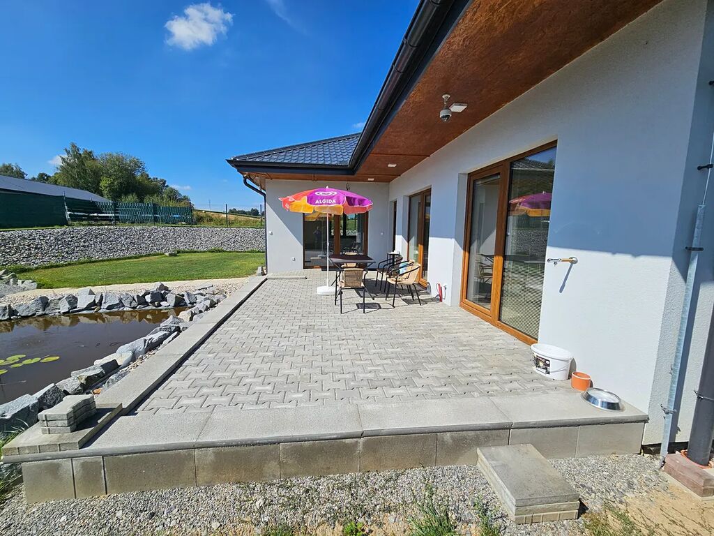 Sháníte krásné moderní a reprezentativní bydlení? K tomu navíc pohodlí města a ještě navíc klid a přírodu venkova? Tak v tomto případě mám pro vás nabídku zcela nového domu, domu ve kterém ještě nikdo nebydlel a to v Havlíčkově Brodě, ul. Reynkova. Jedná se o zděnou přízemní stavbu s obytnou plochou 145 m2, na kterou navazuje velká terasa o výměře 30 m2. Dispozičně se jedná o 4+kk, tedy po vchodu do vstupní chodby zde nalezneme 2 pokoje, ložnici s vlastní koupelničkou WC, dále obývací pokoj s kuchyní , koupelnu vybavenou rohovou vanou, též sprchovým koutem, samostatné WC, šatna a na závěr technickou velkou místnost ( s možností i dalšího využití), jejíž zpřístupnění je z domu, ale také přímo se zahrady o rozloze 950 m2. Pozemek je oplocen, má vjezd opatřený bránou na dálkové ovládání a zadní branku pro útěky do přírody. Na něm dále stojí zahradní domek a v přední části je umístěné zarybněné jezírko s lekníny. Nemovitost je napojena na elektřinu, voda je vlastní z vrtané studny, odpady jsou svedeny do jímky. Plyn zde není zaveden a není ho třeba, neboť vytápění (podlaha voda) a ohřev vody (bojler 300l) zajišťuje kvalitní tepelné čerpadlo. Dům je volný, připravený k nastěhování a čeká na dobrého nájemce, třeba i s domácím mazlíčkem. Nájemné za nemovitost a měsíc činí 30.000, Kč + služby (cca 5 tis.), vratná kauce 50 tis. a odměna RK 20.000, Kč. Pronájem je snadno uplatnitelný jako náklad do účetnictví. Volejte pro informace, či sjednání termínu prohlídky.