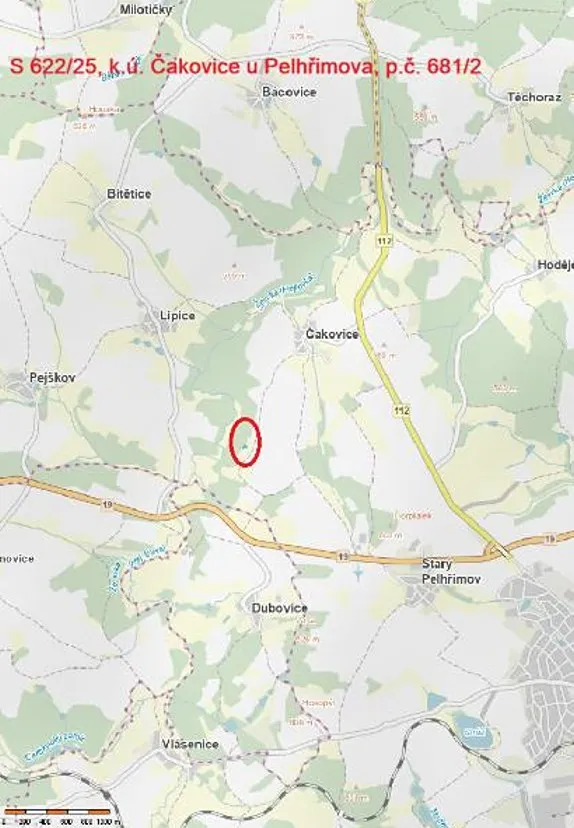 Prodej lesa, Pelhřimov, 1222 m2