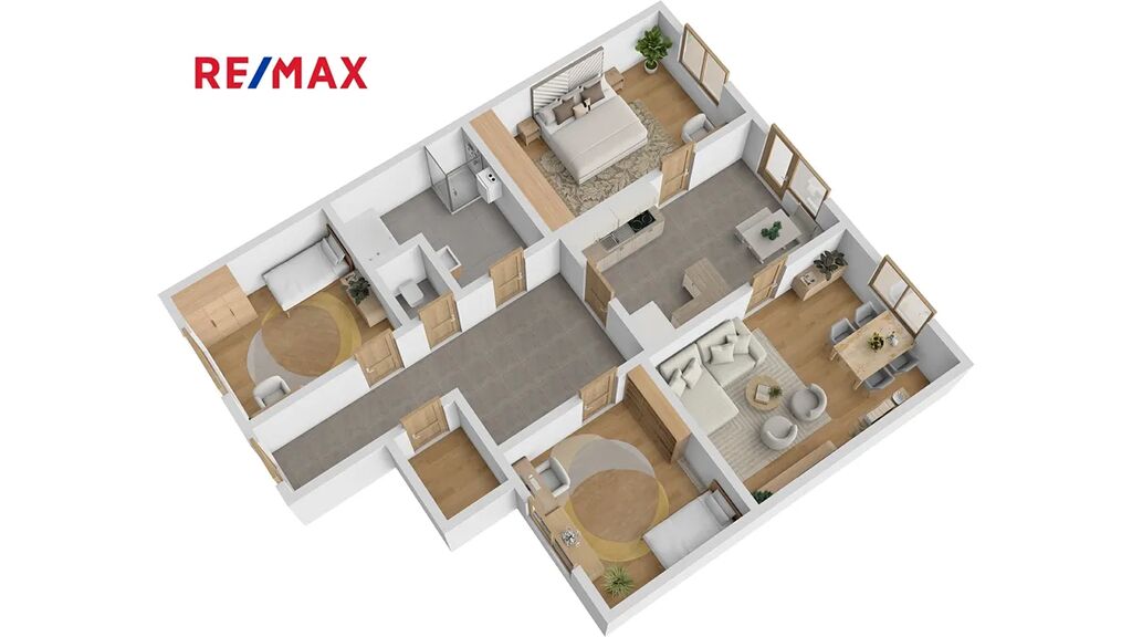 1) Čtyři samostatné neprůchozí pokoje poskytnou dostatek prostoru a soukromí