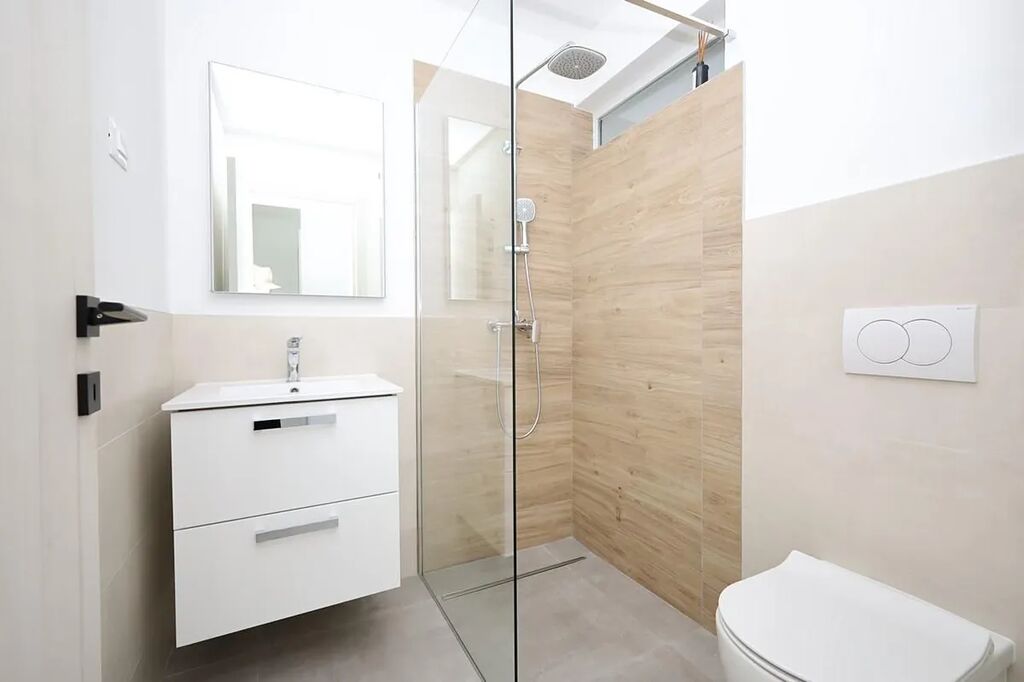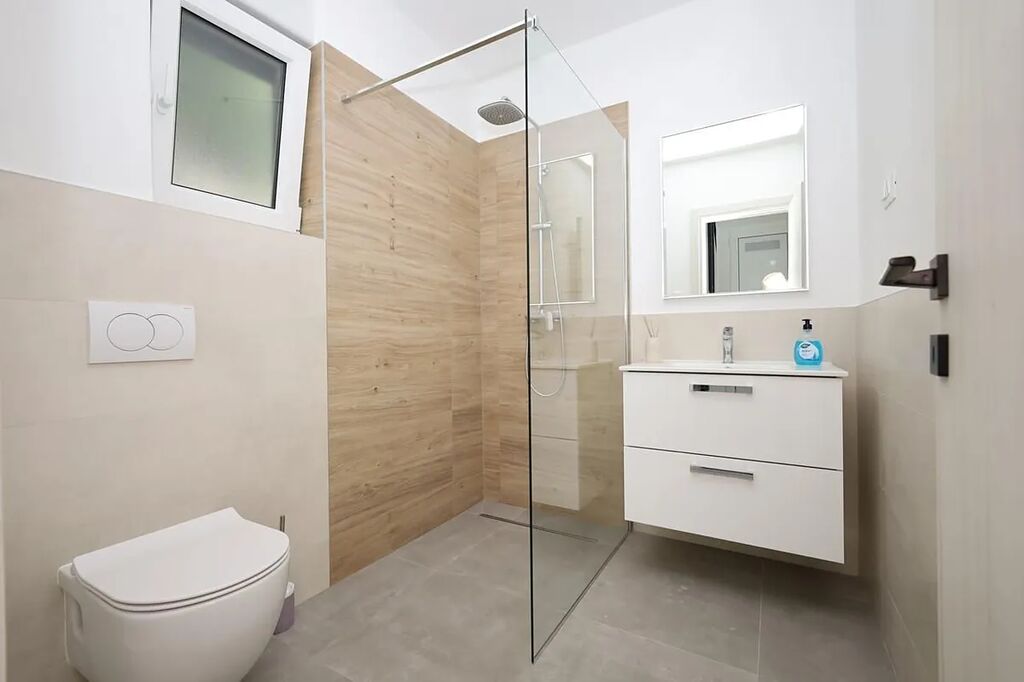 Vzdálenost do centra je asi 1 km, k moři cca 300 m a k oblázkové pláži asi 480 m.