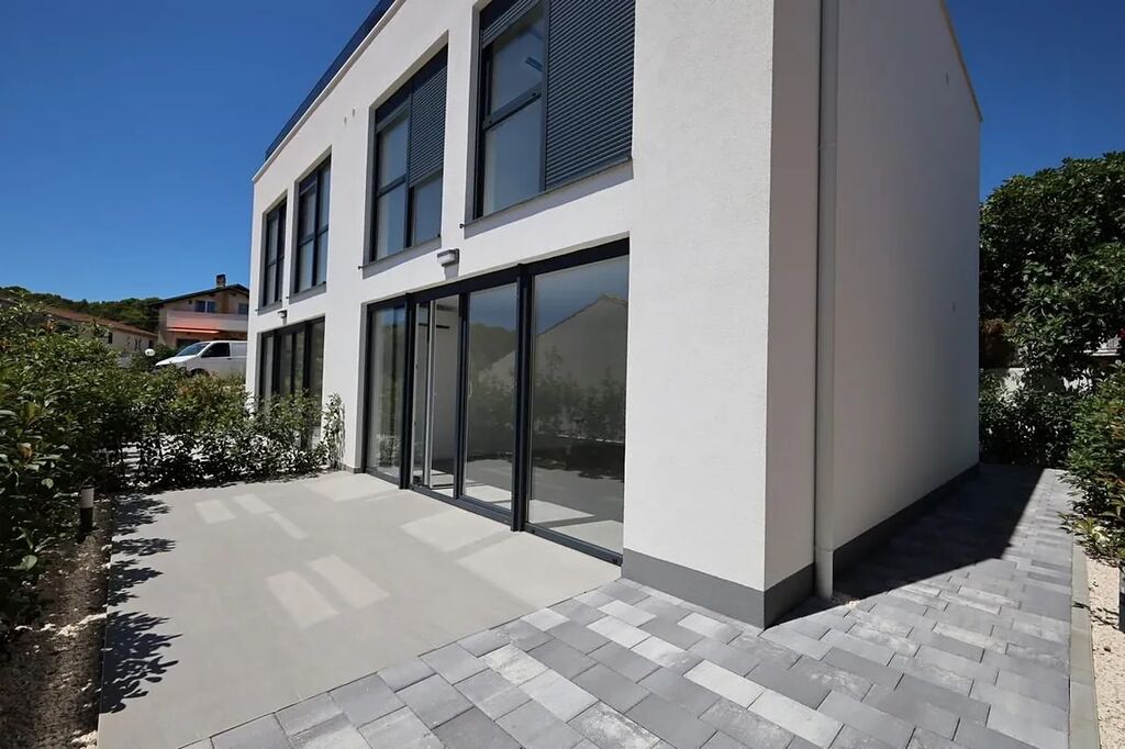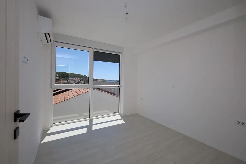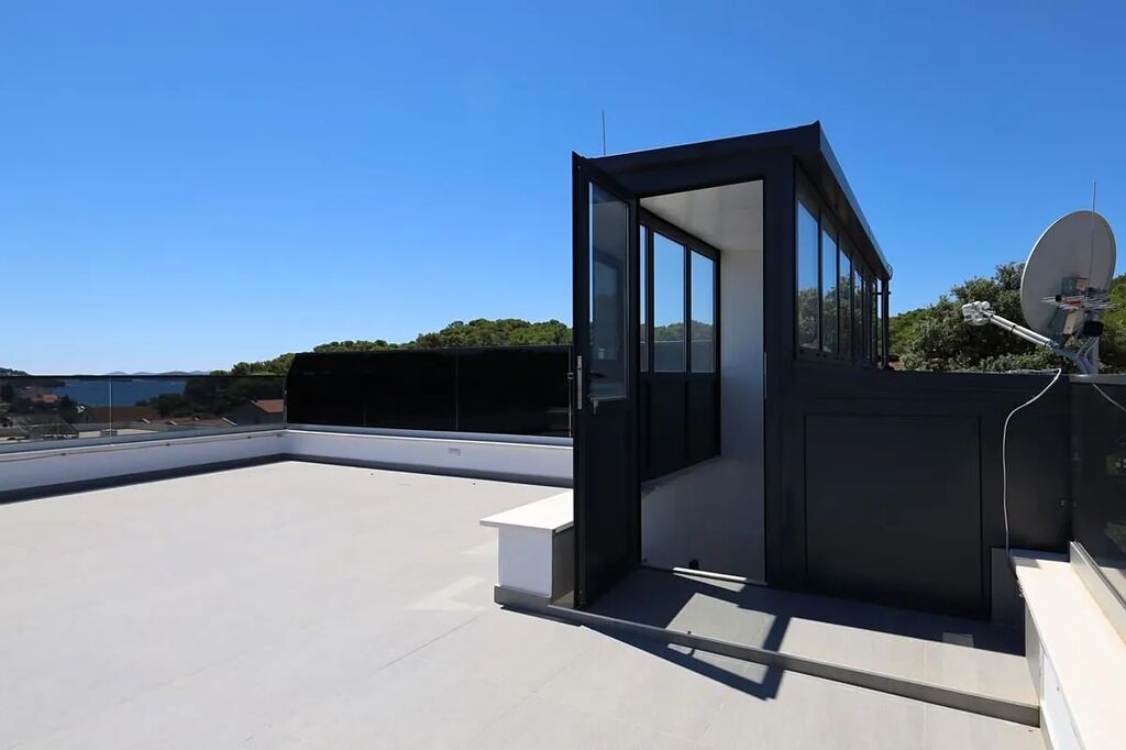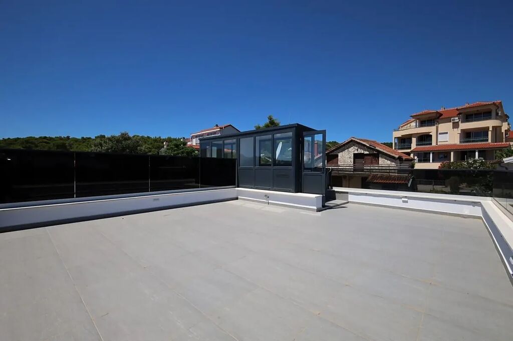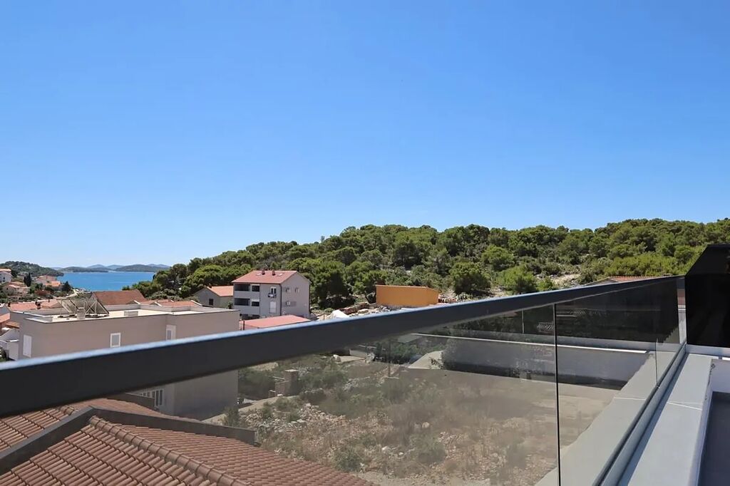 Dovolujeme si Vám nabídnout na prodej nový dům se střešní terasou a výhledem na moře v obci Tisno na ostrově Murter, jenž je spojen s pevninou mostem, v Šibenické oblasti v Chorvatsku. Jedná se o nově postavený rodinný dvojdomek. Polovina domu o rozloze 96,14 m2 má zahrádku o rozloze 60 m2 a sestává z přízemí, 1. patra a 2. patra, kde je střešní terasa.