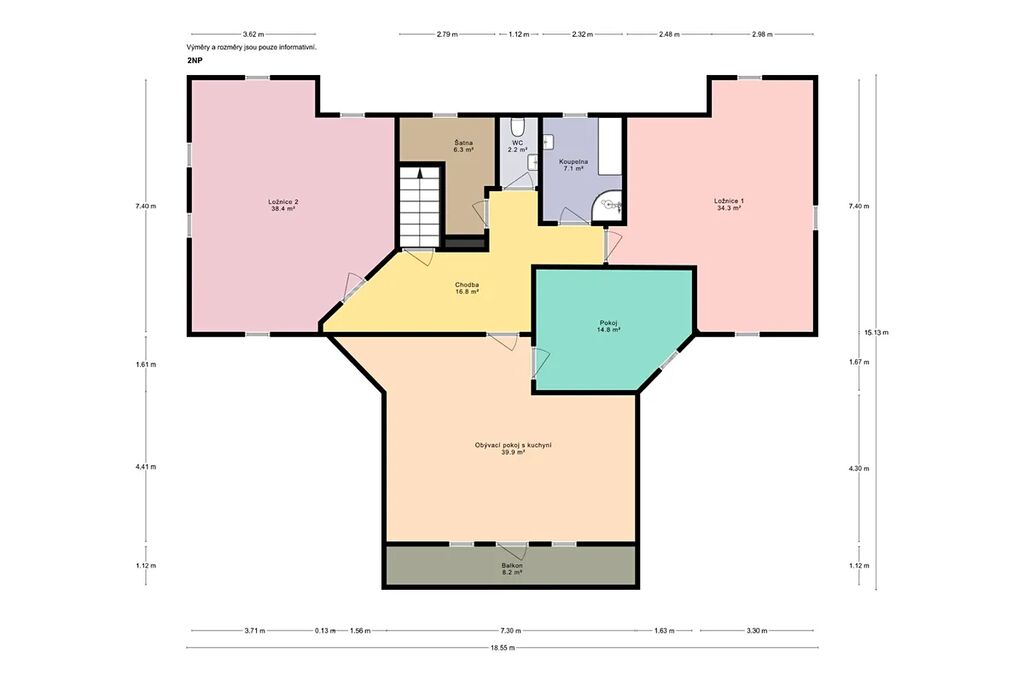 V patře se nachází druhá obytná část o ploše cca 158 m² s balkonem, ze kterého se otevírá úchvatný výhled do lesa – ideální místo pro letní večery a chvíle klidu.