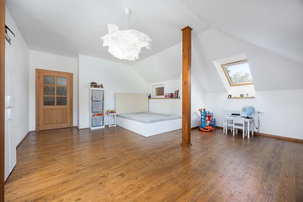 Dům o celkové dispozici 9+kk poskytuje široké možnosti využití – ideální pro dvougenerační bydlení, kombinaci bydlení a podnikání, nebo jako velkorysé rodinné sídlo pro ty, kteří hledají prostor a přírodu v dosahu Prahy.