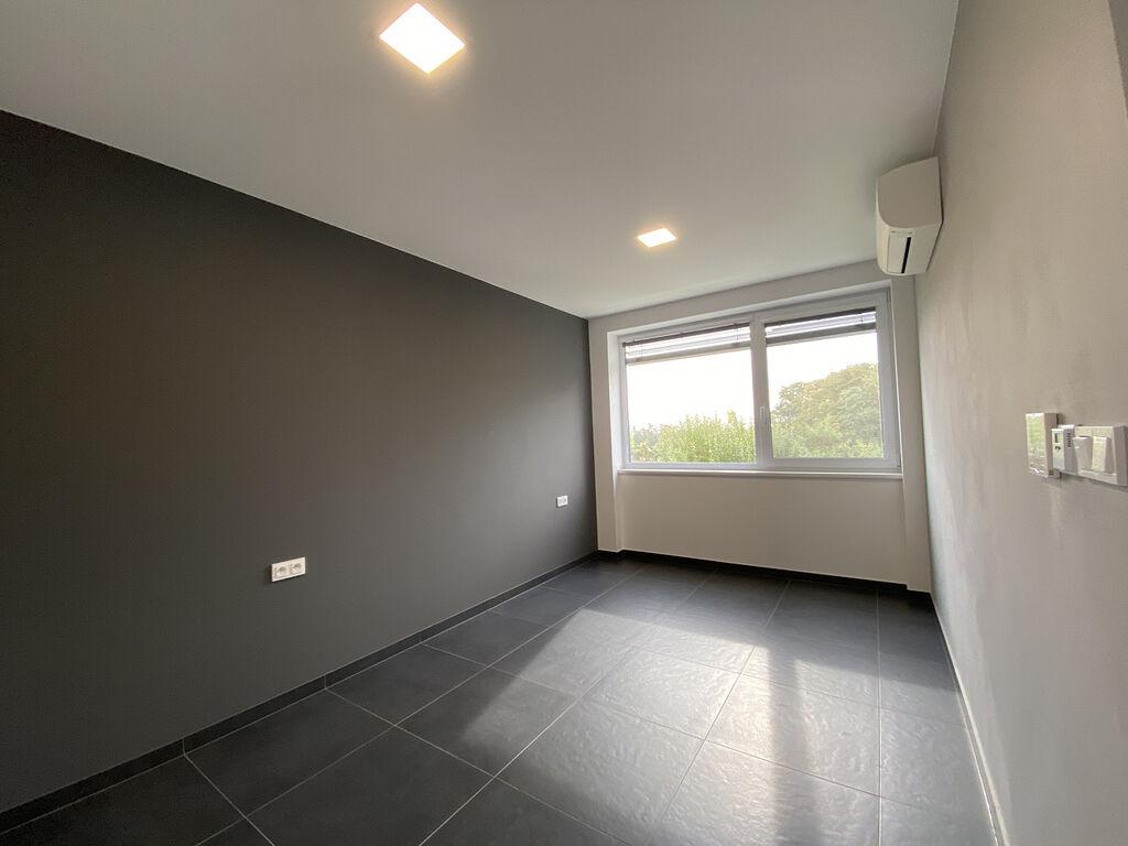 The apartment feels bright and clean, with a modern and airy atmosphere. It is partially furnished – it includes a kitchenette with built-in appliances, built-in wardrobes offering plenty of storage space, and complete lighting throughout the apartment. Comfort is enhanced by air conditioning, electric exterior blinds, interior blinds, insect screens and high-quality tiled flooring. The loggia facing the quiet greenery provides a pleasant place to relax after a long day.
