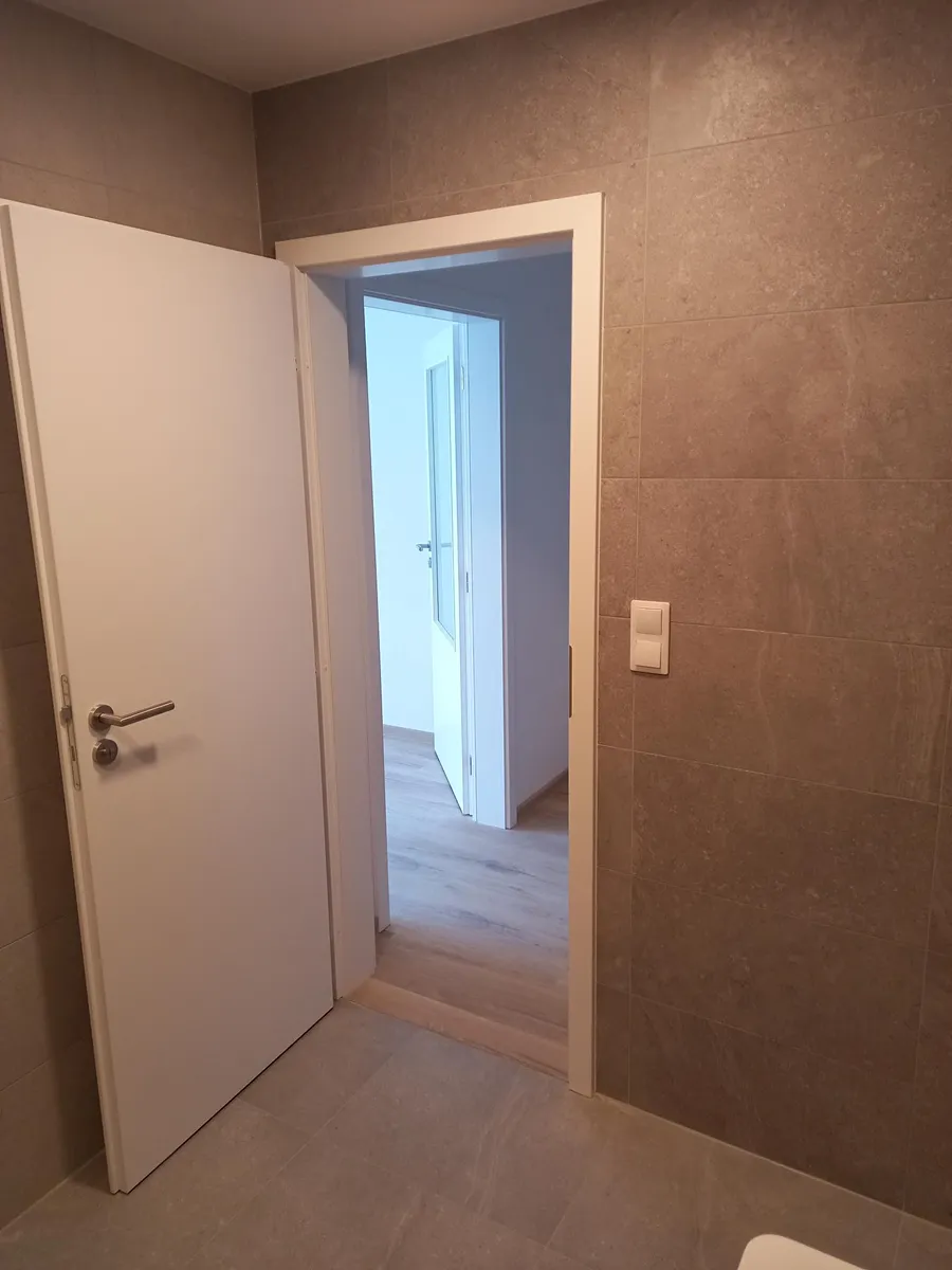 Dovolujeme si Vám nabídnout dlouhodobý pronájem bytu v novostavbě o dispozici 1+kk o podlahové ploše 33,7 m2 + sklepní kóje o výměře 2 m2 + balkón o výměře 5,3 m2 nedaleko stanice metra Rajská zahrada, trasa B. Předsíň má výměru 3,82 m2, koupelna s WC 5,94 m2 a obýv. pokoj s kuch. koutem 21,86 m2. Byt je umístěný ve 3. nadzemním podlaží domu s výtahem. Jde o novostavbu domu.