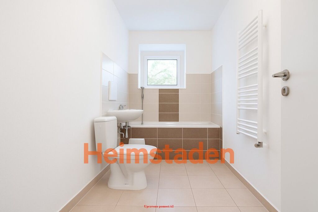 Koupelna spojená s toaletou nabízí vanu a čistý, funkční prostor, který čeká jen na vaše osobní doladění.