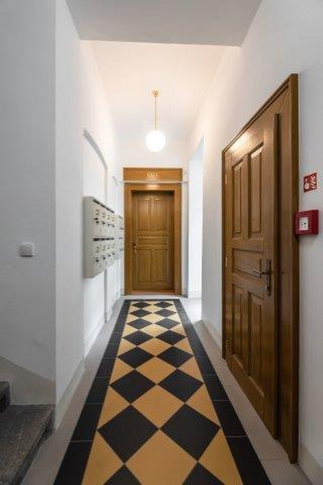 Byt se nachází v krásné části Vinohrad s výbornou dostupností do centra Prahy. Zastávka tramvaje je cca 2 minuty chůze od domu, na metro Náměstí Míru se dostanete za 3 minuty tramvají nebo pěšky za 12 minut. V blízkosti je park Grébovka, přímo před domem Bezručovy sady.