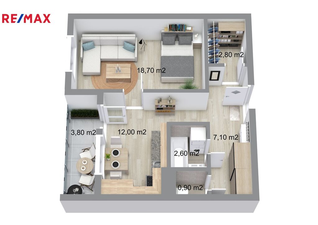 • prostorný pokoj 18.70 m2, který díky své velikosti umožňuje spojení obývacího pokoje s ložnicí