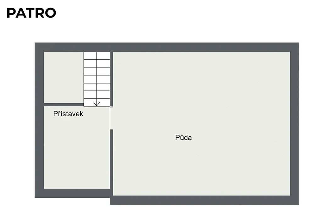 Kuchyň je prakticky propojena s obytným prostorem a působí svěže a funkčně. V podkroví se nachází ložnice s dostatkem úložného prostoru, kterou lze využít i jako pracovnu nebo dětský pokoj. V suterénu je sklep a k dispozici je i kůlna pro uskladnění nářadí. Na pozemku je vybudováno parkovací stání a vjezd na pozemek zajišťuje elektrická brána s dálkovým ovládáním, což podtrhuje komfort i bezpečnost celého objektu.