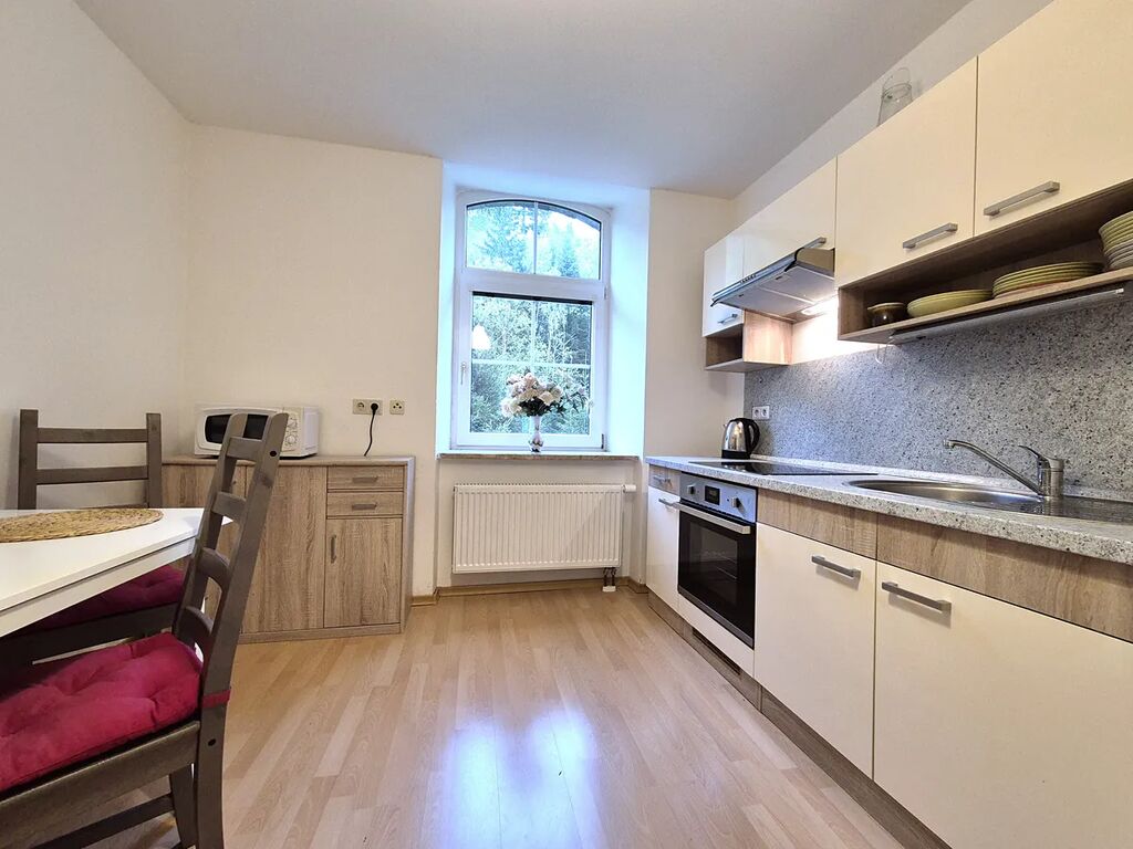 Nabízím k prodeji byt o dispozici 2+1 a výměře 53 m² v obci Bayerisch Eisenstein ležící na česko-německé hranici. Byt se nachází v klidné části obce v zeleni, přímo za domem je vstup do Národního parku Šumava. Bytová jednotka se nachází ve zvýšeném přízemí třípodlažního domu a disponuje obývacím pokojem, ložnicí, kuchyní, prostornou předsíní a koupelnou s WC. Součástí je i sklep a další vlastní úložné prostory náležící k bytu vhodné pro uložení kol či lyží. Byt je ve velmi dobrém stavu a připravený k okamžitému užívání. Nemovitost je vhodná jak k trvalému bydlení, tak i k rekreačnímu využití díky své poloze v atraktivní přírodní lokalitě s výborným dopravním spojením. Nejbližším českým městem je Železná Ruda vzdálená 3 km, výborné přímé vlakové spojení je do Plzně i na německou stranu. Bytový dům prošel celkovou rekonstrukcí, včetně střechy, půdy, plynového kotle a rozvodů. Vytápění je zajištěno centrálním plynovým kotlem s možností dálkového ovládání. V domě je k dispozici uzamykatelná lyžárna, kolárna a společenská místnost s pingpongovým stolem. K bytu patří také společná místnost sdílená se sousedním bytem, vhodná pro uložení kol nebo lyží. Parkování je možné přímo u domu, kde se nachází také venkovní posezení s ohništěm a krbem. Lokalita je v dosahu všech českých mobilních sítí i internetu. Měsíční poplatky činí 92 EUR (svoz odpadu, společný úklid, údržba domu, stočné, teplá voda, topení). Náklady na elektřinu jsou přibližně 26 EUR/měsíc. Výhodou je, že většinu bytových jednotek v domě vlastní Češi a společenství vlastníků jednotek je spravováno a vedeno v českém jazyce. V blízkém okolí je mnoho turistických cílů - Velký Javor, Javorské jezero, Špičák, Černé a Čertovo jezero a další. Pro více informací volejte.