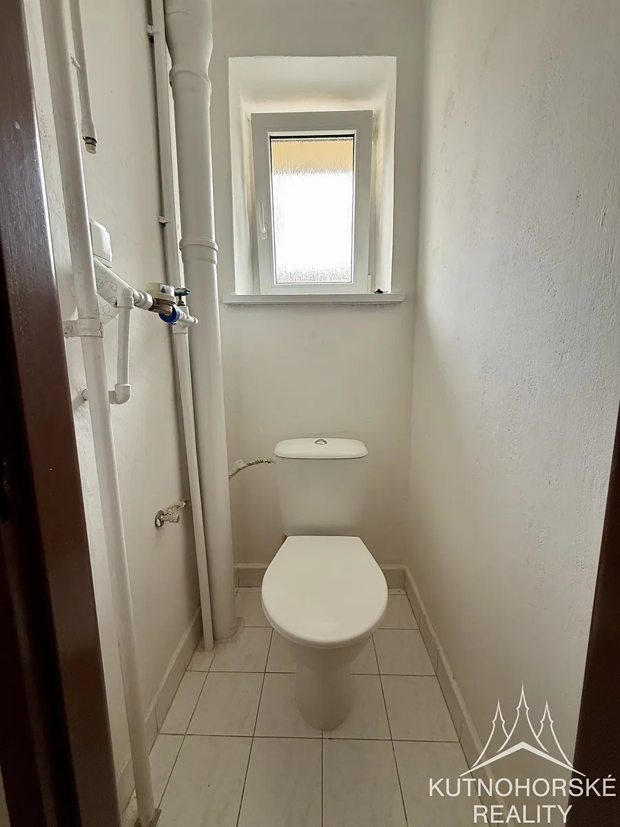 Za kuchyní se nachází menší místnost s oknem a radiátorem, která může sloužit jako praktický sklad, šatna nebo útulná pracovna.