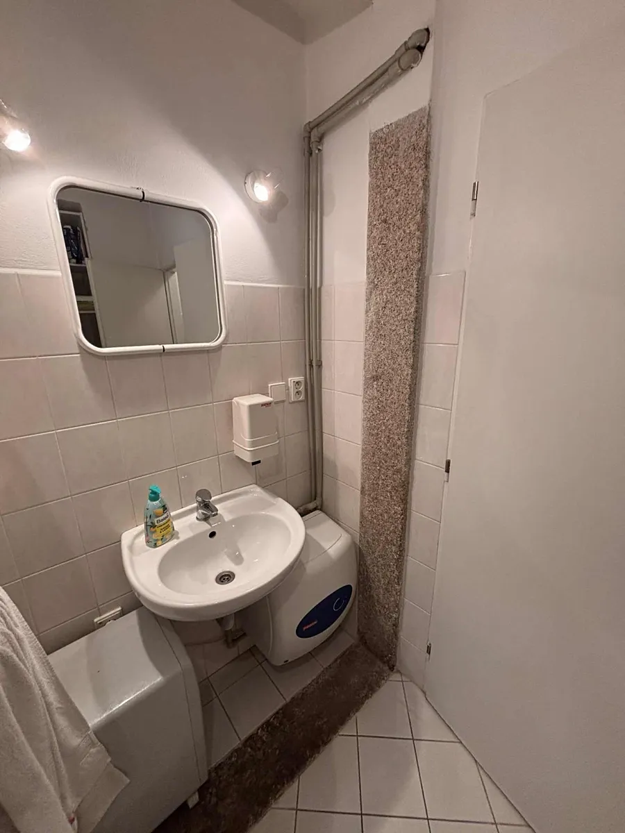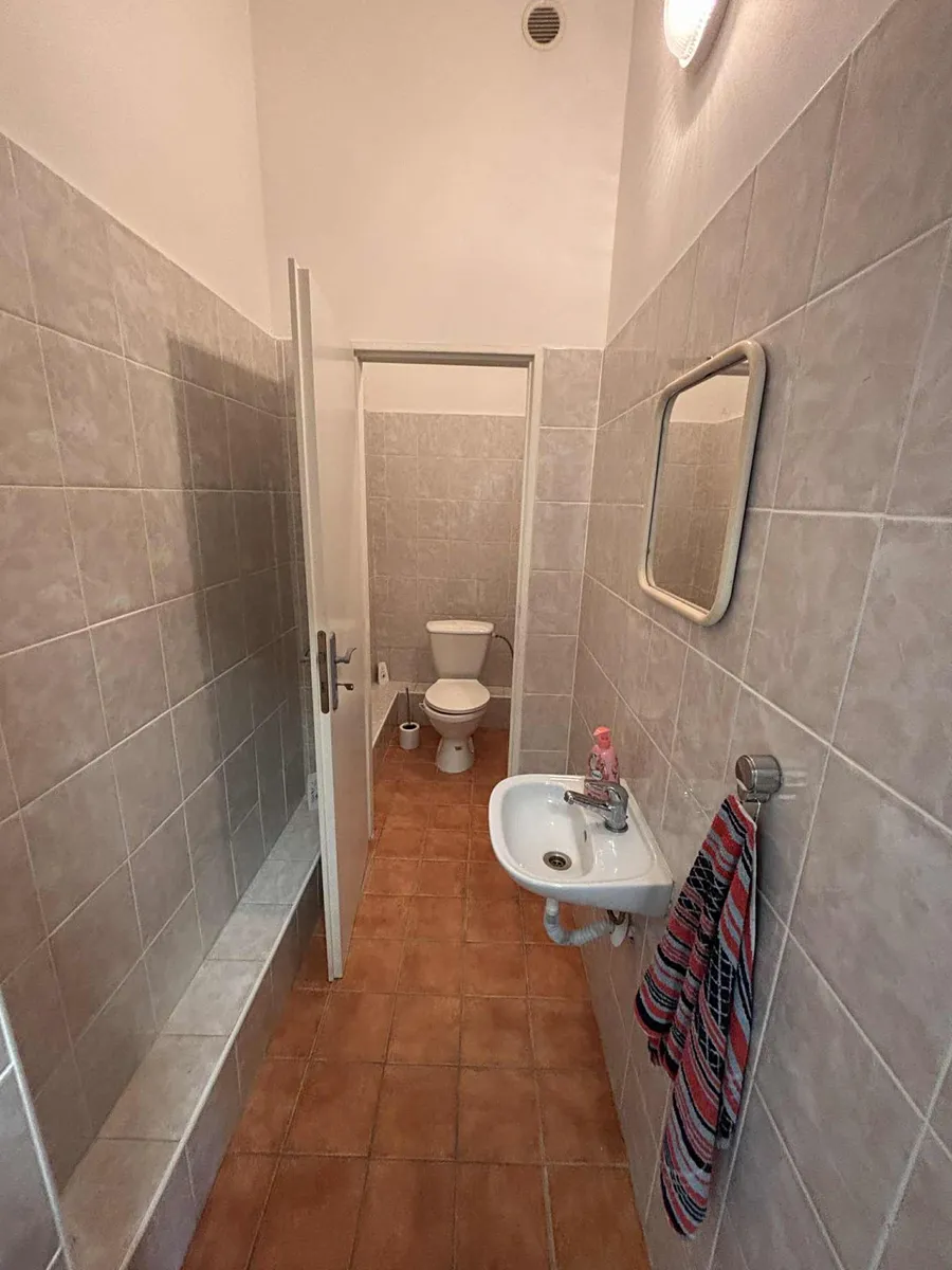 Celý prostor je rozdělen na 4 místnosti , sklad přístupný z parkoviště, dále je zde kuchyňský kout, úklidová komora, sprchový kout, 3x WC. 2x WC v předním prostoru, jedno WC a sprcha v zadní části. Vytápění celého prostoru je kombinovaným plynovým kotlem.