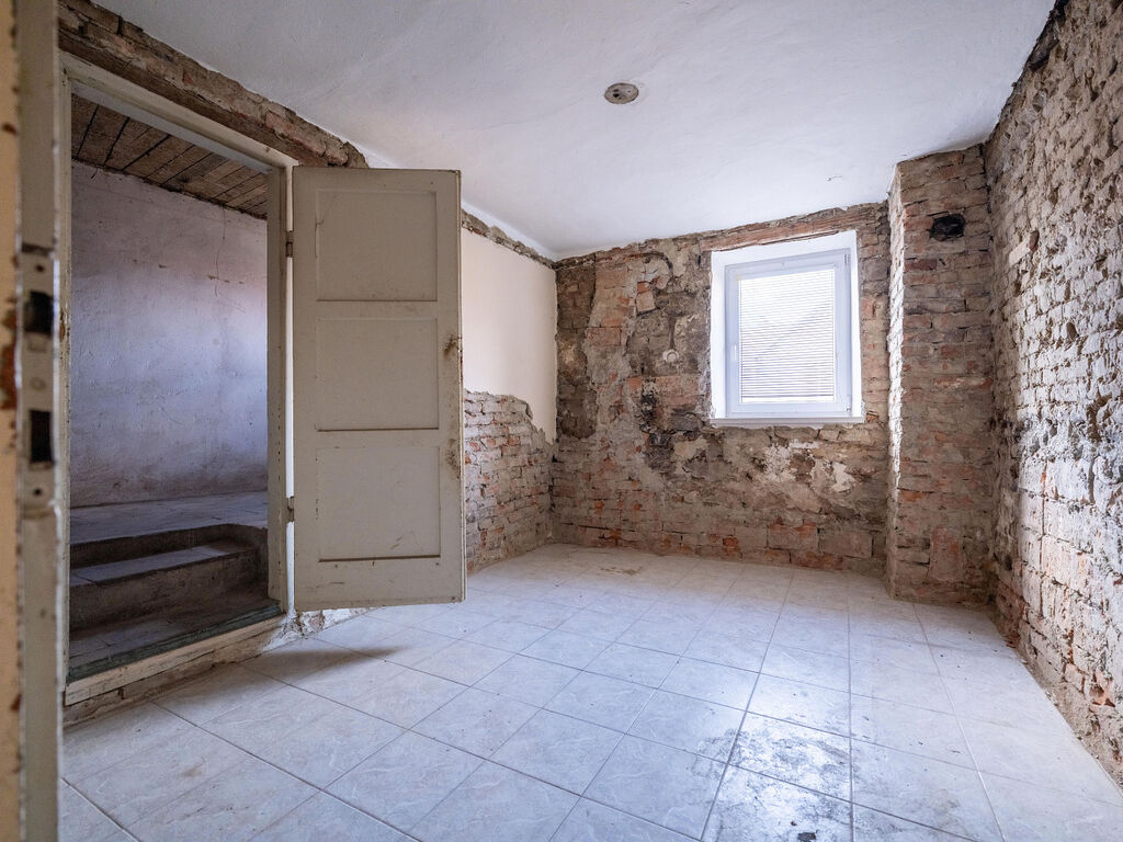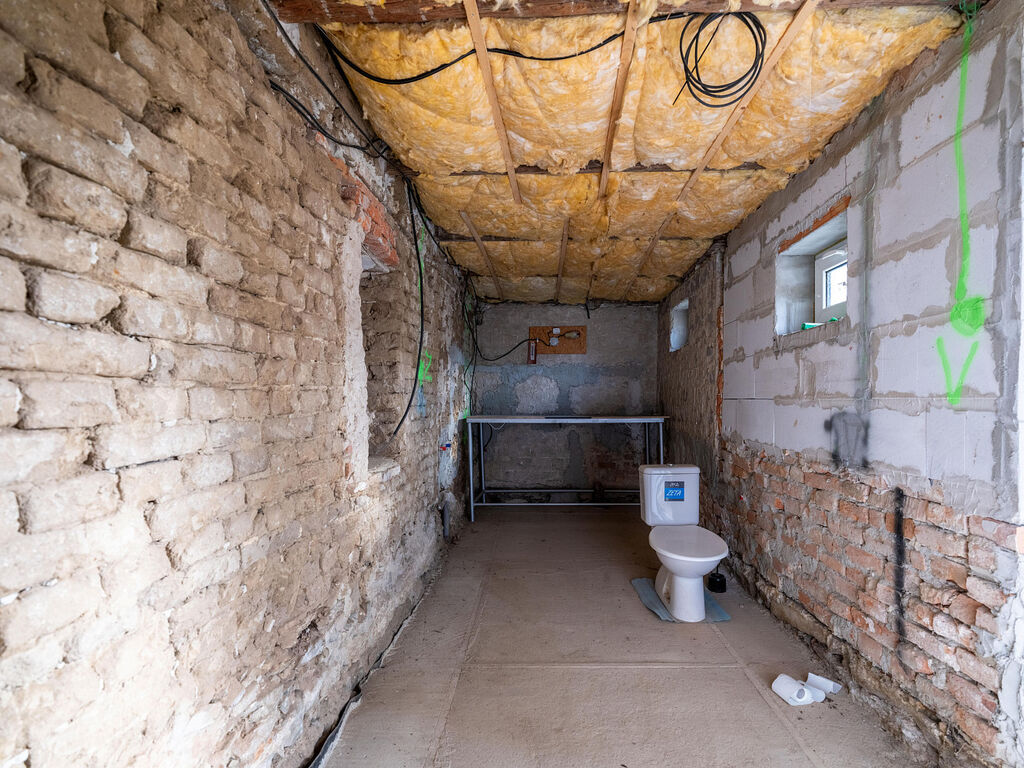 Na domě již probíhá kompletní rekonstrukce, v místnostech je otlučená omítka, do kuchyně jsou natažené rozvody vody, zastavěná plocha 170 m² a je dispozičně řešen takto: