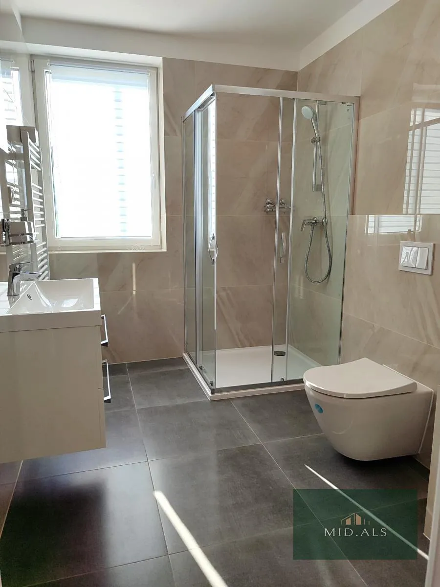 Byt je vybaven moderními technologiemi - klimatizací, podlahovým vytápěním, řízenou rekuperací vzduchu a osvětlením na dálkové ovládání. V kuchyni je instalována kuchyňská linka s varnou deskou, troubou a lednicí. Koupelna se sprchovým koutem a WC je obložena mramorovými obklady. K bytu náleží zděná sklepní koje.
