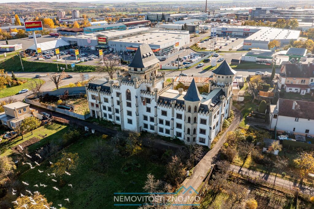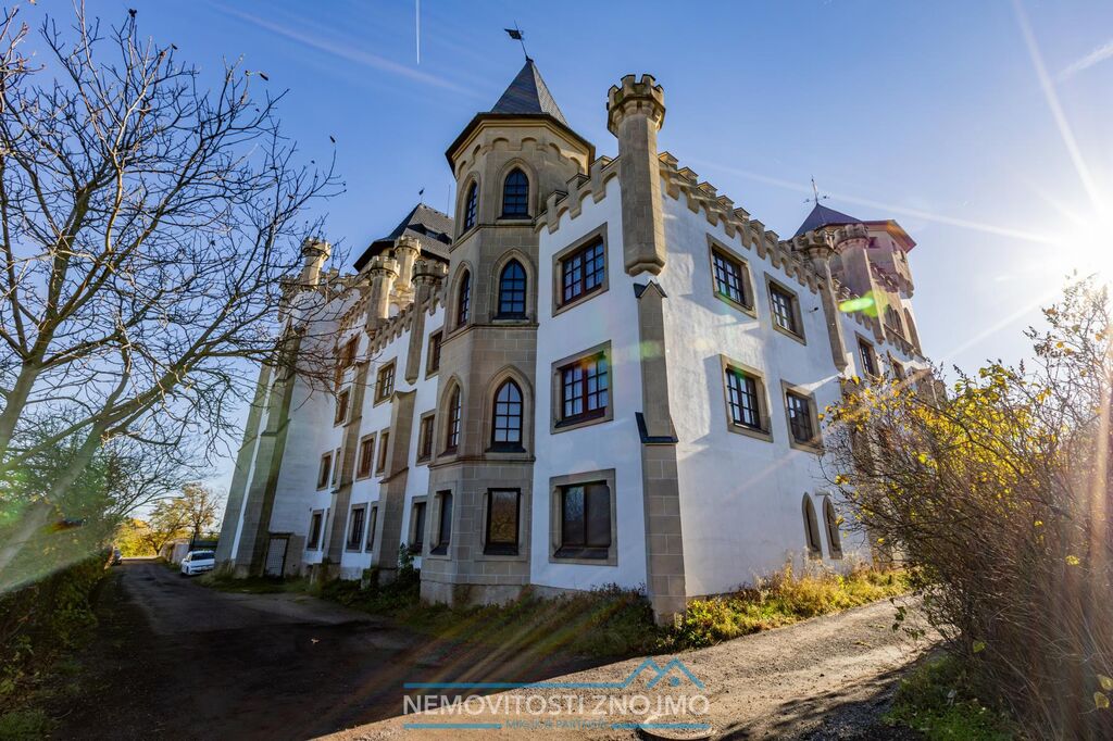 1) 6ti podlažní stavba neogotického zámku vhodná pro ubytování, či jako zázemí větší firmy, zapsaná v katastru jako stavba občanské vybavenosti