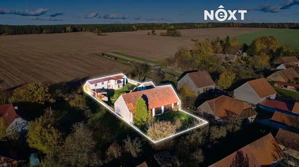 Dům leží na okraji obce a celý areál tvoří uzavřený dvůr bez přímých sousedů, takže nabízí naprosté soukromí a klid. Pozemek o rozloze 1 777 m² zahrnuje i zahradu s ovocnými stromy a dostatkem prostoru pro relax, tvoření či zahradničení.