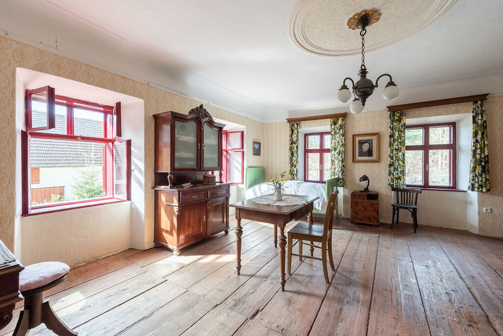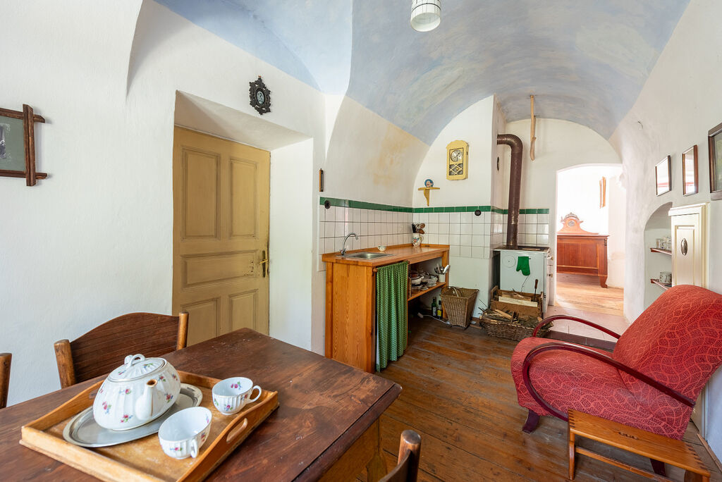 Obytná část: cca 150 m² (v patře stylový historický interiér plus koupelna, v přízemí funkční zázemí s kamny a připojením vody)