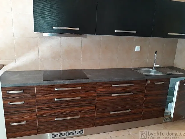 Byt je s kuchyňskou linkou a vestavěnou čtyř plotynkovou sklo keramickou varnou deskou, digestoří, dřezem s odkapávačem a stojankovou baterii. Součástí vybavení je menší barový pultík se dvěma stoličkami a věšáková stěna s botníkem za dveřmi. K dispozici je menší vestavěná chladnička s výparníkem, automatická pračka, nástěnné infrazářičové přídavné topení a odvlhčovač vzduchu. Na podlahách keramická dlažba. Topení a ohřev vody úsporným centrálním kotlem na plyn. Samostatná měřidla médií. Pokoj s kuchyní 18,9 m2, chodba 2,35 m2, koupelna s WC 5,45 m2. Na přiloženém půdoryse jde o byt označený čísly 0.16-0.19. Sklep není k dispozici. Prostor pro odložení kola v technické místnosti vedle kotelny.