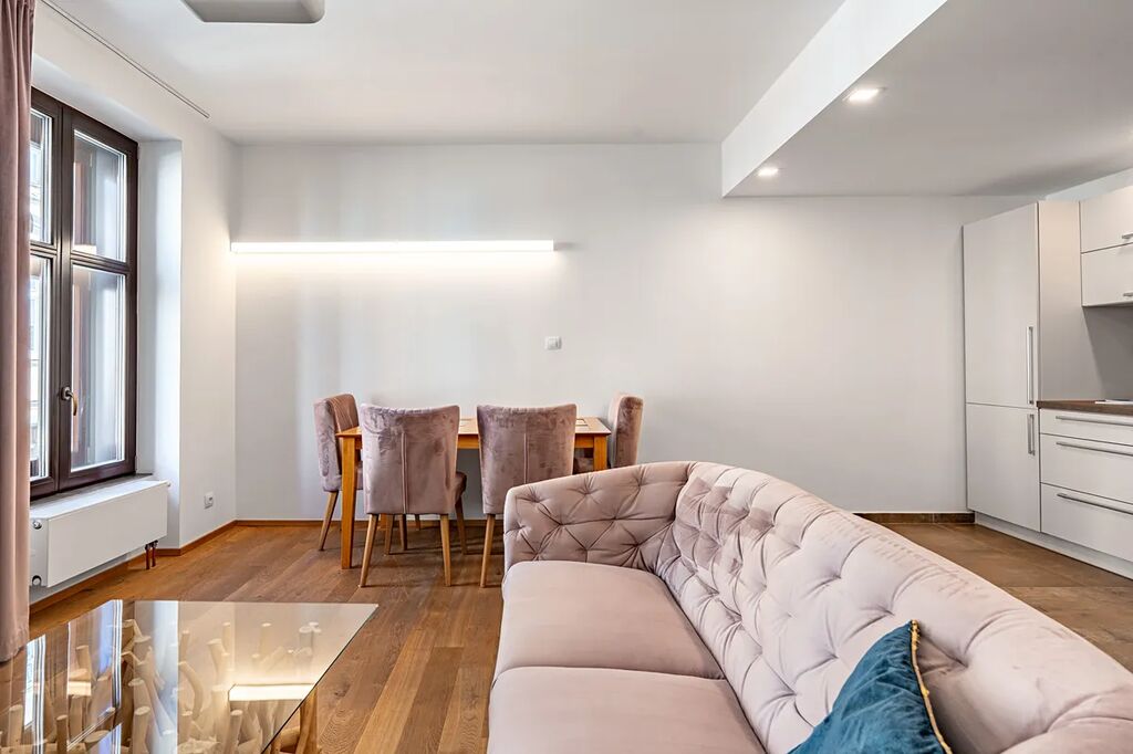 V interiéru byly použity velmi kvalitní materiály, na kterých se rozhodně nešetřilo – od dřevěné podlahy, přes designové osvětlení až po precizní zpracování.