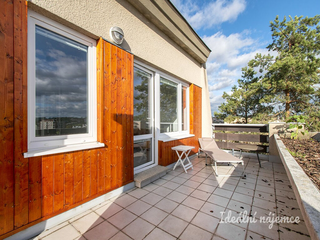 Výhodou bytu je prostorná terasa, která nabízí krásný výhled na Malvazinky a Jinonice.