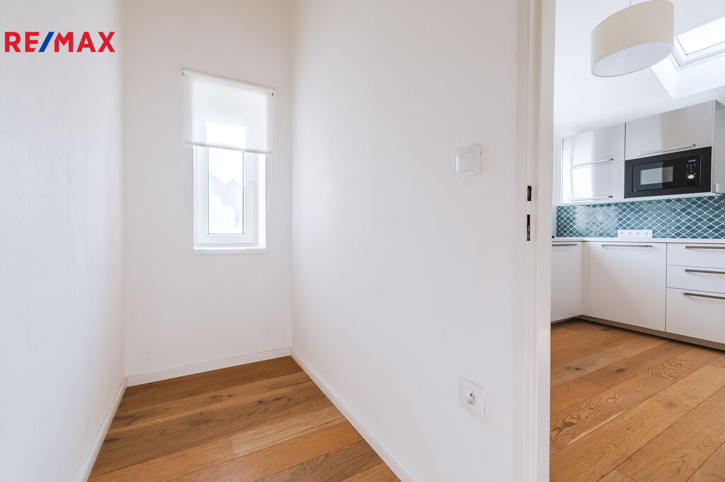 V bytě jsou dubové dřevěné podlahy, nové interiérové dveře, moderní koupelna, samostatné WC a nová kuchyňská linka. Celý prostor působí velmi světle, vzdušně a nabízí komfortní bydlení i pro náročnější nájemníky.