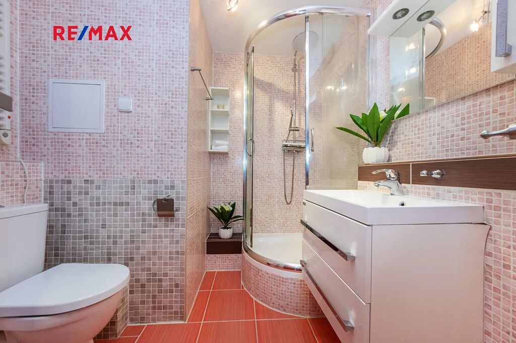 • Koupelna po rekonstrukci se sprchovým koutem, pračka součástí vybavení a místo na sušičku připravené
