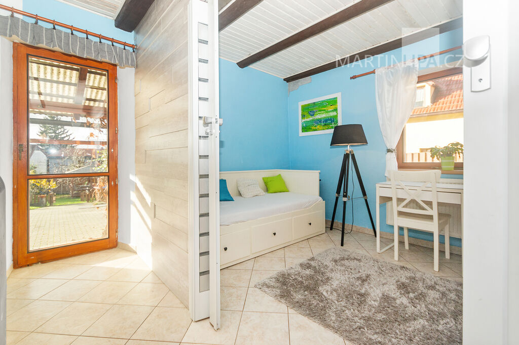 Zahrada, která vám vezme dech a už nepustí. Když projdete bránou z ulice, svět se jaksi ztiší. Život na tomto místě budete milovat kvůli zahradě, čerstvému vzduchu, šepotu vzrostlých ovocných stromů, ranní kávě v altánu nebo grilovačce tamtéž. Kutily nadchne zděná dílna, na kterou navazuje zastřešené parkovací místo, sloužící i jako zázemí pro dřevo do krbu. Kdo se rád vrtá v záhoncích, najde jich tu hned několik a to včetně hezkého dřevěného zahradního domku, do kterého uklidíte nejen zahradní nářadí. A v létě se můžete vydovádět v bazénu.