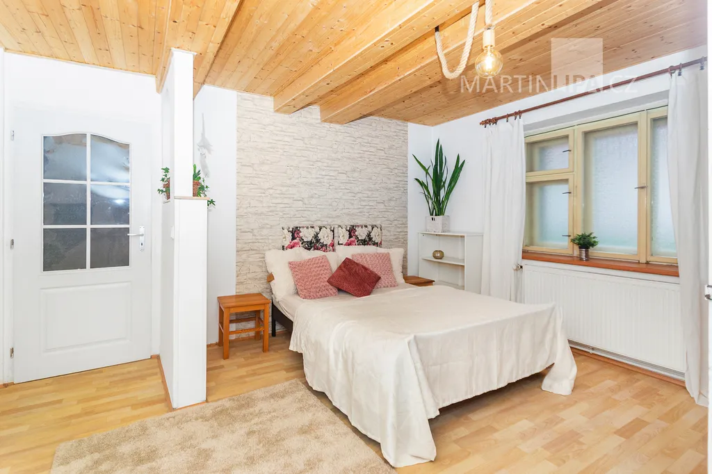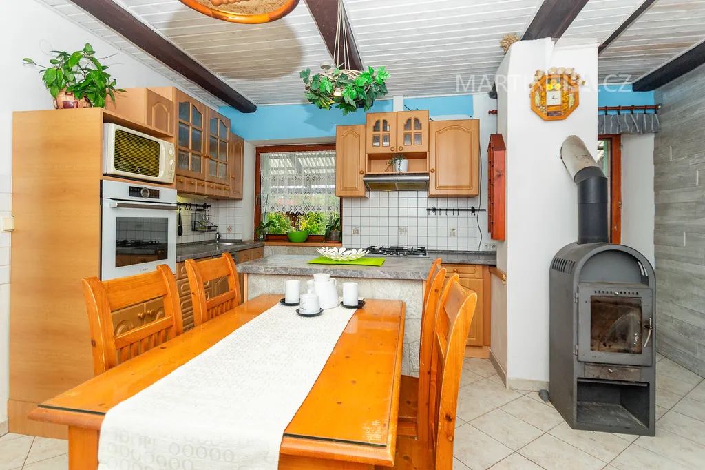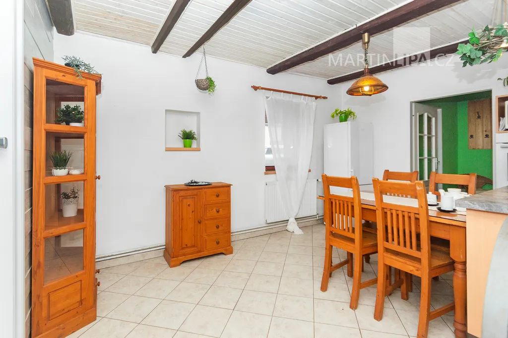 Dům je starší poctivý kus. Plně obyvatelný, místy s trochu unaveným make-upem, ale přitom upřímně připravený na další kapitolu. Rozhodně by vás neměl nijak překvapovat – a když, tak spíš pozitivně. V roce 2016 dostal novou střechu včetně krovu s krytinou Bramac, topí plynovým kotlem Vaillant (2002) a část oken se měnila v roce 2003. Dispozice 4+1 dává smysl v běžném provozu a pokud by vám to bylo málo, je zde velkrysá půda, přímo stvořená pro vestavbu dalších pokojů. Minimálně dva nebo tři by se tam v pohodě vešly. Střešní okna jsou již nainstalována a na vás by zůstalo jen to vymyslet a dotvořit.