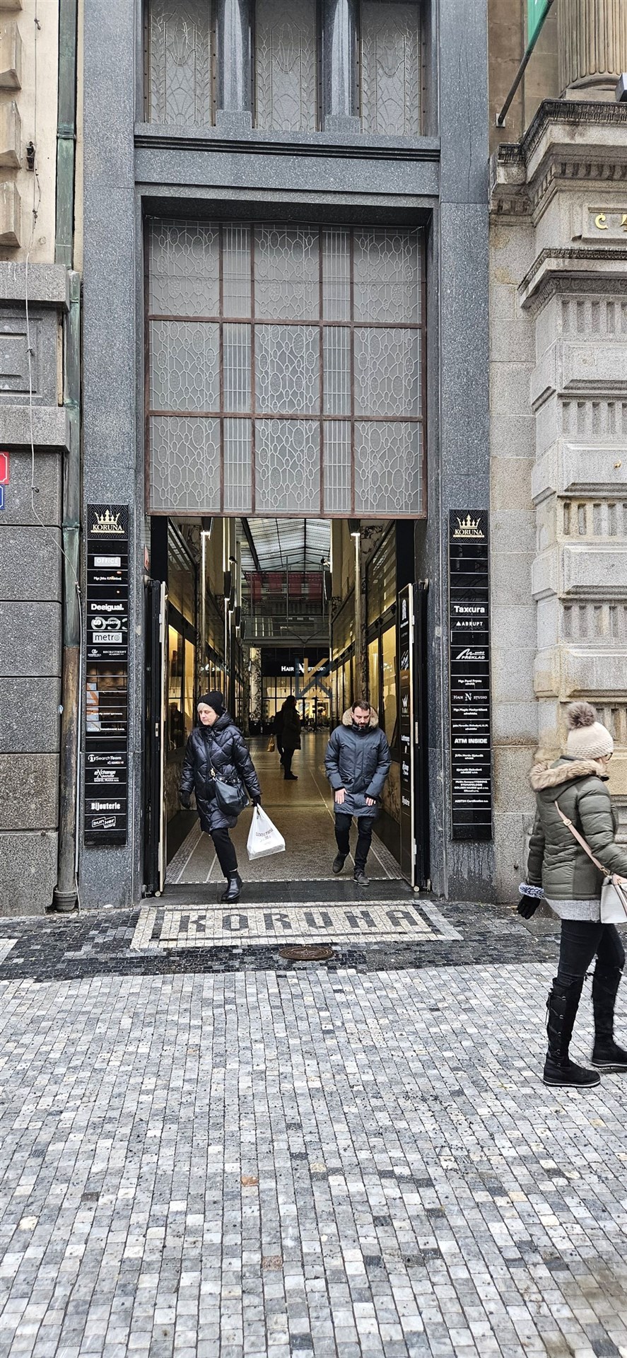 Jedinečný a monumentální Palác Koruna na Václavském náměstí 1 v Praze 1 je význačné dílo české moderní architektury. Ústřední dominantu exteriéru Paláce Koruna představuje věžovitý vrchol stavby, do jehož zakončení byl umístěn atribut ve tvaru koruny vystihující pojmenování paláce. Věž současně zdobí i přísně symetricky rozmístěná trojsoší hmotných postav ve splývavých tógách s kápěmi přes hlavu. Palác Koruna má tři podzemní a sedm nadzemních podlaží. V současné době prochází pasáž revitalizací, své místo zde mají luxusní restaurace, kavárny a služby.