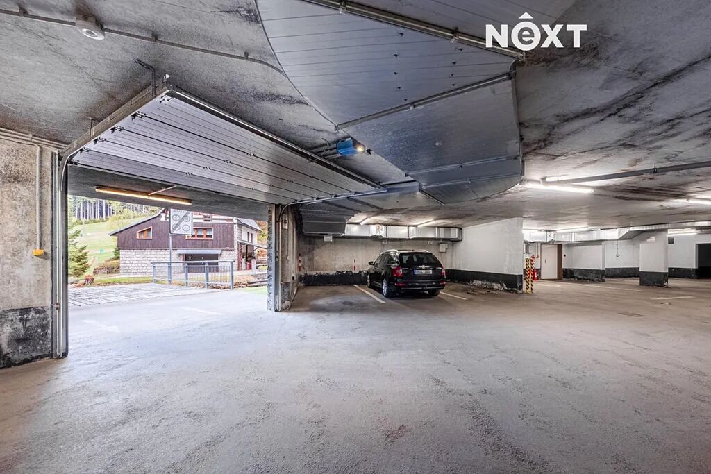 U bytu patří vlastní stání v podzemní garáži. Na patře vlastní kóje na lyže.