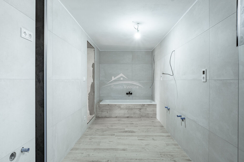 V interiéru je téměř dokončena moderní kuchyňská linka se spotřebiči značek AEG a Mora, koupelna nabízí vanu i sprchový kout, WC je samostatné. Součástí nemovitosti jsou hospodářské přístavby, sklady a garáže vhodné pro dílnu, garážování nebo rozšíření obytné části.
