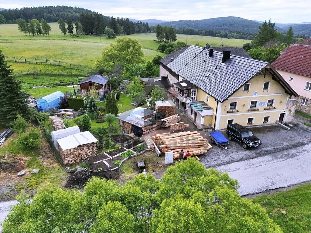 Nabízíme Vám k prodeji nízkoenergetický rodinný dům o dvou bytových jednotkách 3+1 a 3+kk, který se nachází v atraktivní lokalitě a turisticky vyhledávaném prostředí na Šumavě v obci Hrudkov, Vyšší Brod. Nemovitost má velice lukrativní polohu v malebné vesnici, kde se nachází pouze osm domů v naprosto krásném prostředí. Dům se nachází na vlastním pozemku o velikosti 2.826 m2, zastavěná plocha domu je 560 m2, užitná plocha domu je 500 m2. Dům je po rekonstrukci – nová střecha, rozvody včetně fotovoltaiky, rozvody elektriky, vody, interiéry (není kompletně dokončeno). V přízemí domu se nachází bytová jednotka 3+kk - obývací pokoj s kuchyní, dva pokoje, koupelna s WC, sklad, sklep, dílna, stodola, krytá pergola. V prvním patře se nachází byt 3+1 – kuchyně, tři pokoje, předsíň, balkón, technické místnosti a další prostor na dodělání další obytné části. V podkroví lze vybudovat další velkou bytovou jednotku. Vytápění domu je podlahové a ústřední – tepelné čerpadlo napojené na fotovoltaiku (dá se říci soběstačné). Elektrika 220/380, napojení na obecní vodovod, vlastní ČOV. Vzdálenost do Vyššího Brodu je 3 km, na Lipno je 11 km. Nemovitost je možné financovat hypotečním úvěrem. V případě jakýchkoliv Vašich dotazů mne neváhejte kontaktovat.