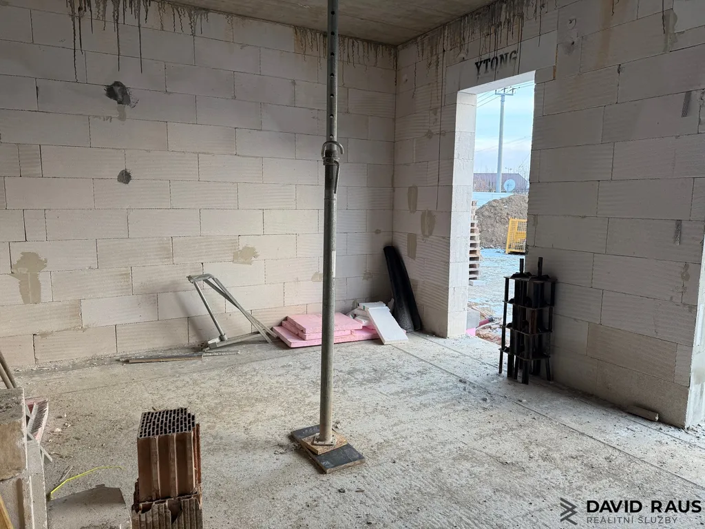 Rodinný dům o podlahové ploše 175 m² je ve fázi výstavby a je jeden ze čtyř nízkoenergetických rodinných domů na ulici Syrovická, v Rajhradě.