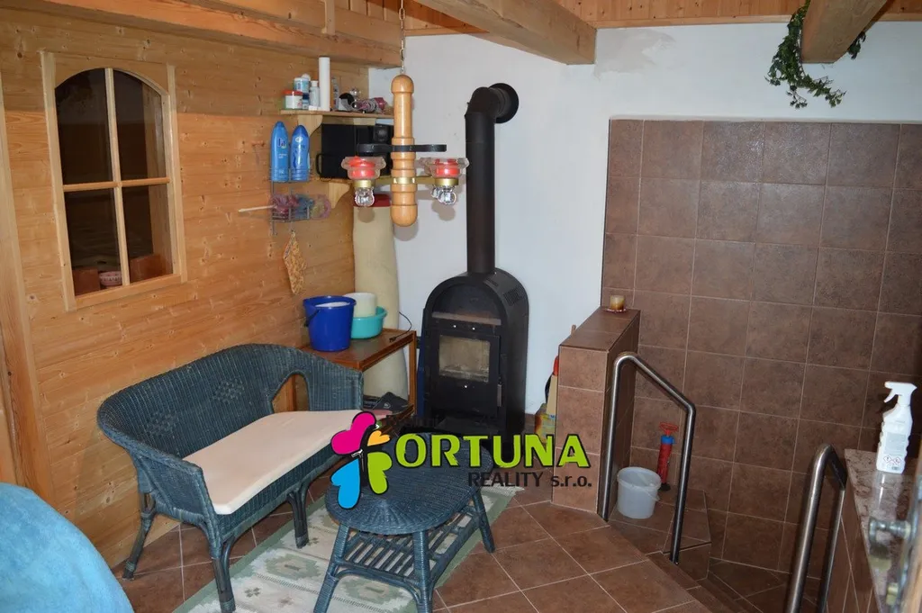 Za domem je zděná stavba v níž je umístěna sauna s ochlazovacím sprchovým koutem.