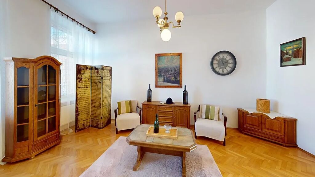 • neprůchozí pokoje, zachovalé parkety + vysoké stropy, pěší dostupnost centra