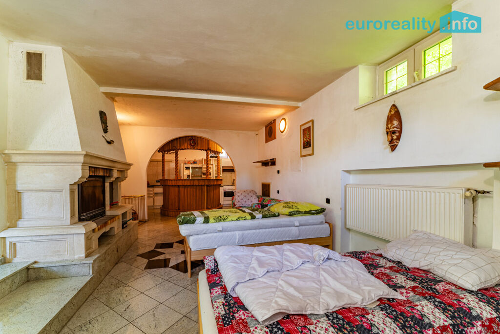 Součástí nemovitosti jsou dvě zachovalé kuchyně s vestavěnými spotřebiči a dvě koupelny vybavené hydromasážní vanou. V přízemí se nachází prostorná společenská místnost s barem, zázemím a krbem, který podtrhuje jedinečnou atmosféru domu.
