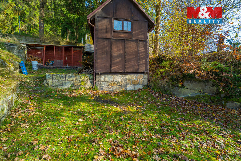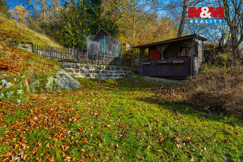Hledáte ideální místo pro rekreaci a odpočinek uprostřed krásné přírody? Představujeme vám rekreační dům v malebném prostředí Horního Prysku (CHKO Lužické hory) je ideální základnou pro aktivní odpočinek i klidné rodinné chvíle. Na pozemku o celkové rozloze 1266 m2 se nachází oplocené rovné hřiště pro děti v horní části zahrady, zastíněná terasa pro relax, skalní sklep pro úschovu dobrot a jiné. Chalupa je s vybavením, vytápěna kotlem na pevná paliva s rozvody do radiátorů, voda z veřejného řádu ohřívaná pomocí bojleru napojeného na kotel, odpadní vody svedeny do septiku. V přízemí se nachází vstupní chodba, obývací pokoj s krbem, jídelna s kuchyní a koupelna s toaletou. V patře dva pokoje a vstup na zahradu, v podkroví jedna místnost na spaní. V okolí naleznete nespočet tras (Střední vrch, Meixnerova stezka, Panská skála), snadný přístup na Lužickou běžkařskou magistrálu a blízko ke Ski areálu Polevsko. Pro další informace a domluvení prohlídky volejte makléře.
