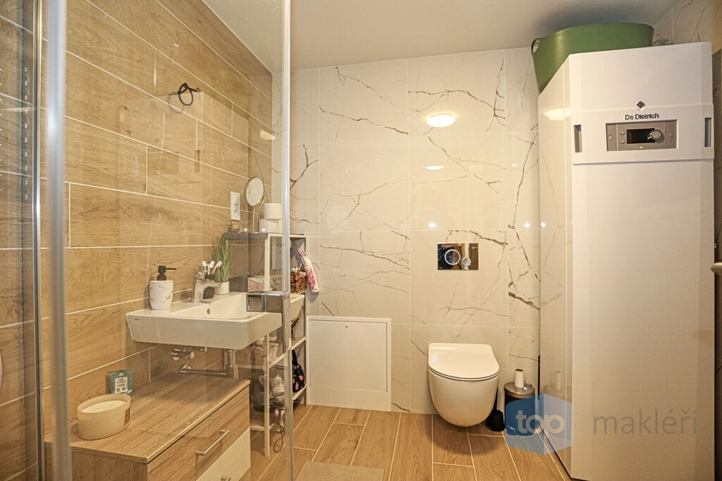 A to ještě není vše. Dům byl postaven v nízko energetickém standartu s tepelným čerpadlem a to jak na ohřev vody, tak i na teplo v kombinaci s teplovodním podlahovým vytápěním.