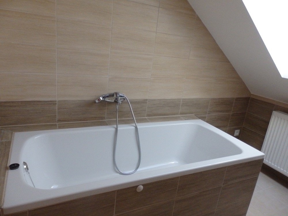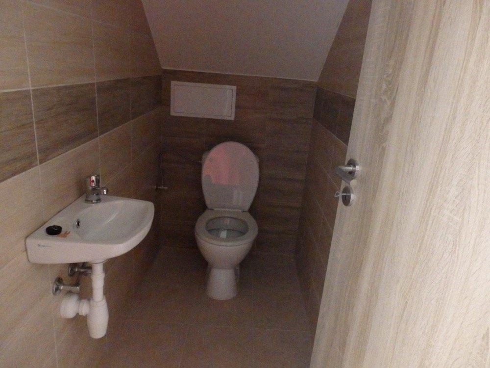 Koupelna s vanou, elektrický bojler na ohřev vody, podlahy jsou z keramického obkladu a plovoucí podlahy, nová kuchyň. Před domem jsou k dispozici parkovací místa. Byt nemá sklep, pouze komoru v patře u bytu.