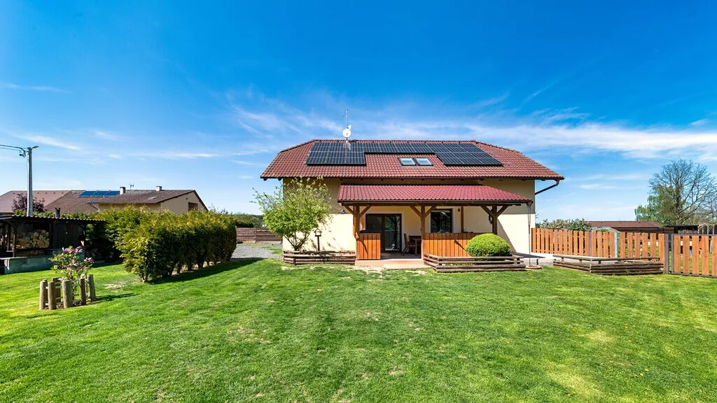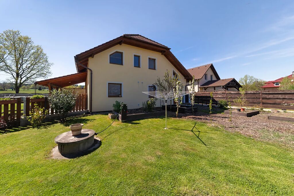 Dům nabízí dostatek prostoru pro pohodlné bydlení aktivní rodině. Tatínek má k dispozici dostatečné parkování, garáž a kotelnu. Maminka určitě ocení pohled z kuchyně na zeleninovou a ovocnou zahradu, kde si může pěstovat bylinky. Pro celou rodinu bude atraktivní a plně využívaná pergola, přístupná z obývacího pokoje a skrytý odpočinkový kout s udírnou.