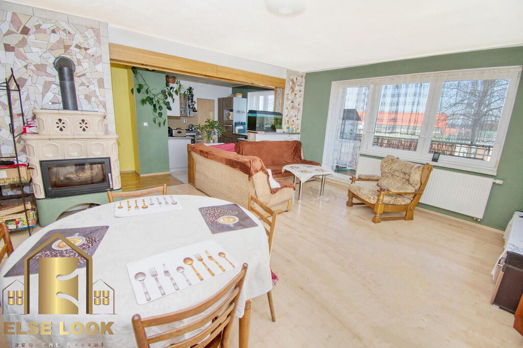 V přízemí se nachází velký obývací pokoj s kachlovými kamny a otevřeným prostorem do kuchyně se spíží, dále vkusná koupelna s vanou a sprchovým koutem, samostatná toaleta a velká ložnice. V patře jsou další tři pokoje s možností úpravy na kuchyň a vlastní koupelnou se sprchovým koutem a toaletou. Dům je celý podsklepený a nabízí další tři místnosti, kuchyň s prádelnou a větší garáž. Dům prošel rozsáhlou rekonstrukcí, zahrnující zejména rozvody vody i odpadů do kanalizace, ústřední topení s rozvody do radiátorů kondenzačním plynovým kotlem, elektroinstalace, nová okna, plovoucí podlahy a některé dlažby s podlahovým topením, krásná kachlová kamna s nerezovým vyvložkováním komínů a zateplení domu polystyrenem. Pro hezké obložení kamenem v v přízemí a na lodžií si můžete sami vybrat barvu fasády domu.