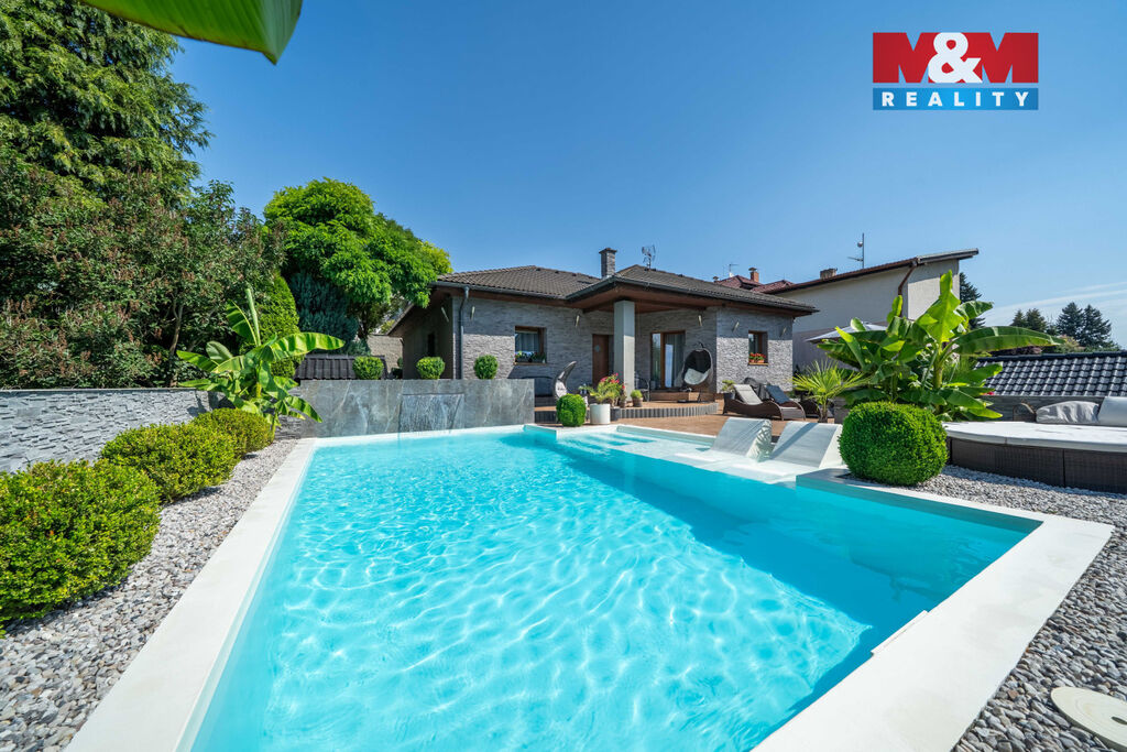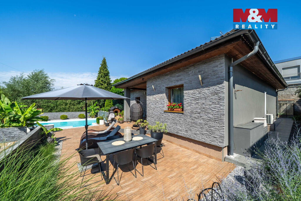 Nabízíme k prodeji výjimečný rodinný dům o dispozici 3 kk, který vyniká vysokým standardem provedení a promyšleným řešením pro komfortní bydlení. Nachází se v klidné části, kde máte absolutní klid a soukromí, zároveň však veškerou občanskou vybavenost doslova na dosah. V domě je prostorný obývací pokoj s krbem propojený s kuchyní a jídelní částí, ložnice, pokoj, velká koupelna s vanou a sprchovým koutem, samostatné WC. Přímý vstup z domu na velkou terasu nabízí krásný výhled do okrasné zahrady a okolí, je ideální pro letní posezení či rodinné grilování. Dominantou celé zahrady je nádherný bazén zapuštěný do země, který vám umožní osvěžení v horkých dnech a promění váš domov v soukromou oázu. Na pozemku o celkové výměře 722 m2 jsou 2 garáže, které nabízí dostatek úložného prostoru. Dům je napojen na veřejnou kanalizaci a zdroj vody je z vlastní studny, vytápění elektrokotlem. Přijďte se přesvědčit, že může existovat domov, který spojuje přírodu, prostor a styl.
