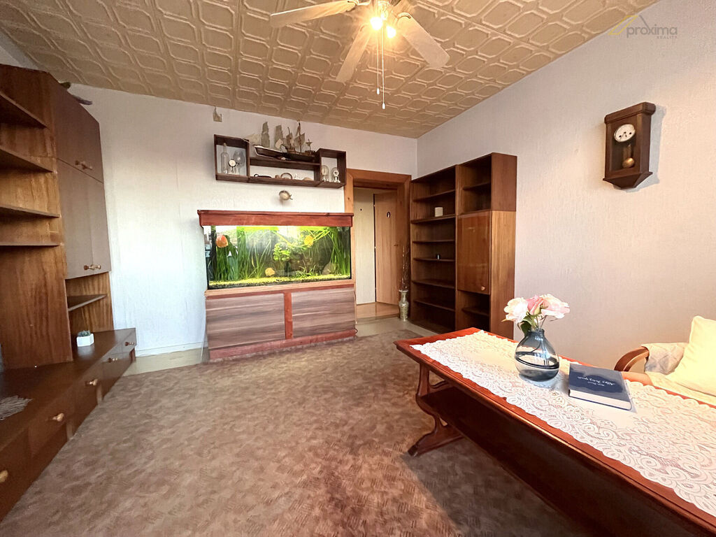 Byt je dispozičně řešen takto: vstupní chodba s místem na vestavnou skříň, obývací pokoj se vstupem na balkon orientovaným na východ, menší pokoj, ložnice, kuchyně, koupelna, WC. Byt je v původním udržovaném stavu, kuchyňská linka po renovaci. K bytu náleží velký sklep v suterénu domu.