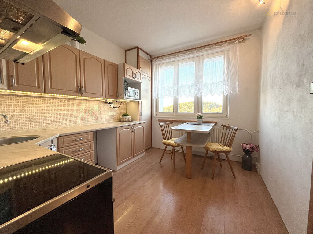 Proxima Reality s. r. o. nabízí v exkluzivním zastoupení klienta prodej bytu 3+1 v osobním vlastnictví o výměře 61 m², ul. 1. máje, Kaplice. Byt se nachází v 6. patře revitalizovaného panelového domu s výtahem.
