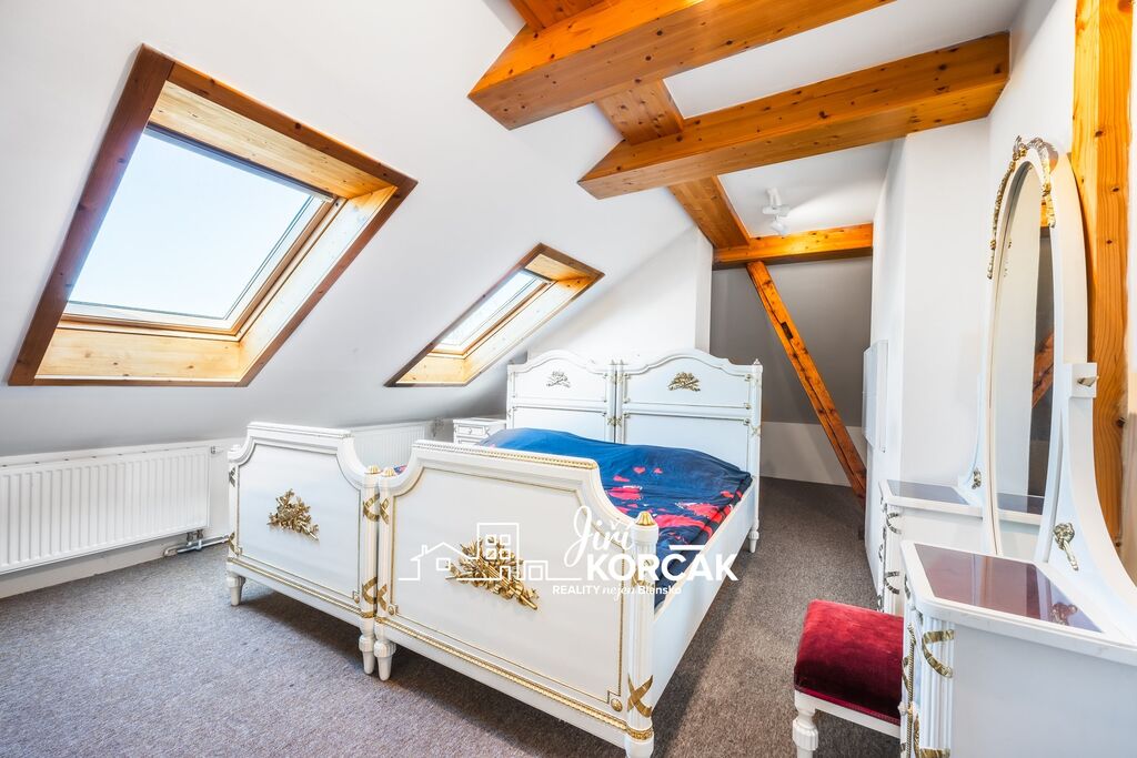 V podkroví najdete dva samostatné pokoje, ideální třeba jako ložnice a dětský pokoj nebo pracovna.