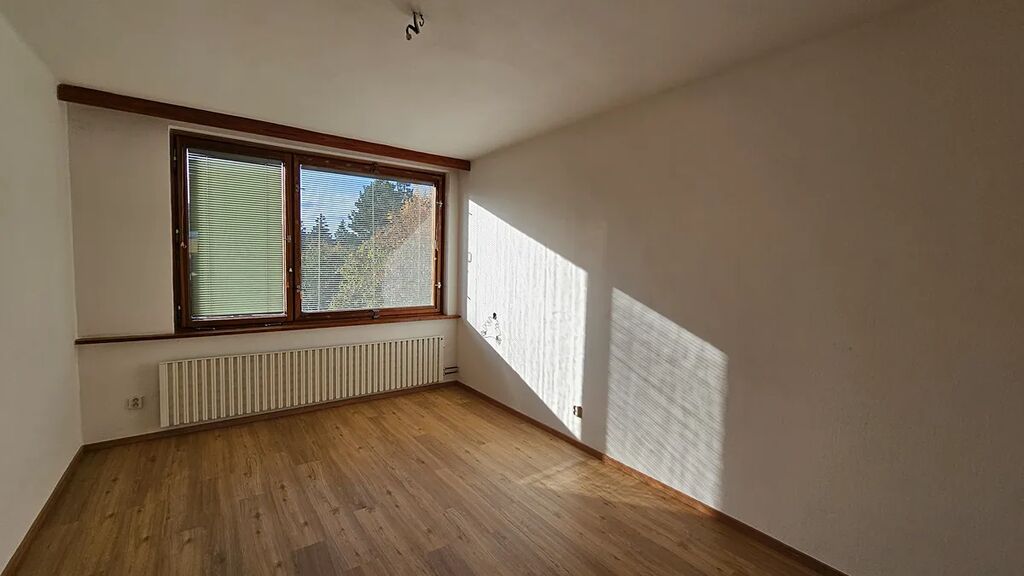 Dům zaujme krásnými nově repasovanými dřevěnými parketami, příjemnou polohou a hezkým výhledem.