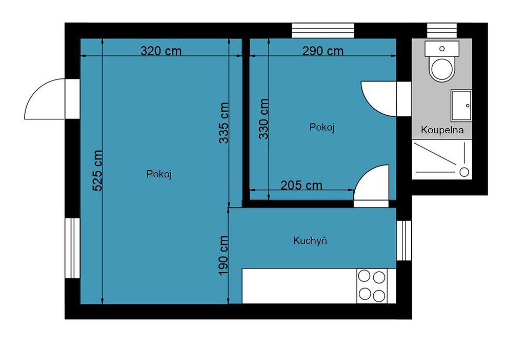 Dále je zde další místnost o výměře 10 m² a koupelna se sprchovým koutem a toaletou.