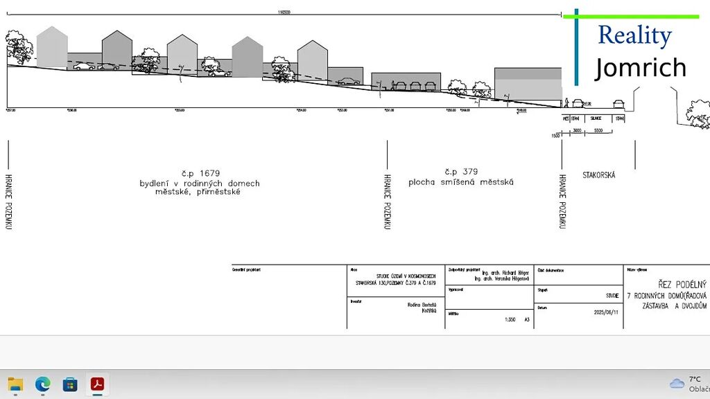 Jedná se o prodej RD i stavebních parcel ve velice lukrativním předměstí Mladé Boleslavi v obci Kosmonosy, Stakorská ul. č.p. 130, a to včetně prověřené a precizně zpracované architektonické studie pro výstavbu RD od renomovaných architektů. Jedna varianta nabízí výstavbu pěti rodinných domů a druhá sedm rodinných domů v řadové zástavbě a dvojdům. Součástí prodeje jsou i schválená stanoviska a vyjádření od Dopravního inspektorátu policie ČR, Vodovodů a kanalizace Mladá Boleslav, inženýrsko – geologické posouzení lokality aj. – v nich je obsaženo cca 6 měsíců práce profesionálního týmu.